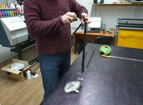 Когда краска высыхает, нам остаётся только закрепить портрет на изготовленный каркас. Для этого мы используем клей-герметик. Он используется нами для склеивания гранита, удержать легкий портрет на металлической раме он точно сможет.
