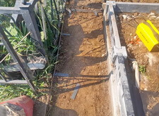 Подготавливаем территорию вокруг места захоронения к покрытию брусчаткой: ввариваем металлическую полосу и укрываем землю геотекстилем.